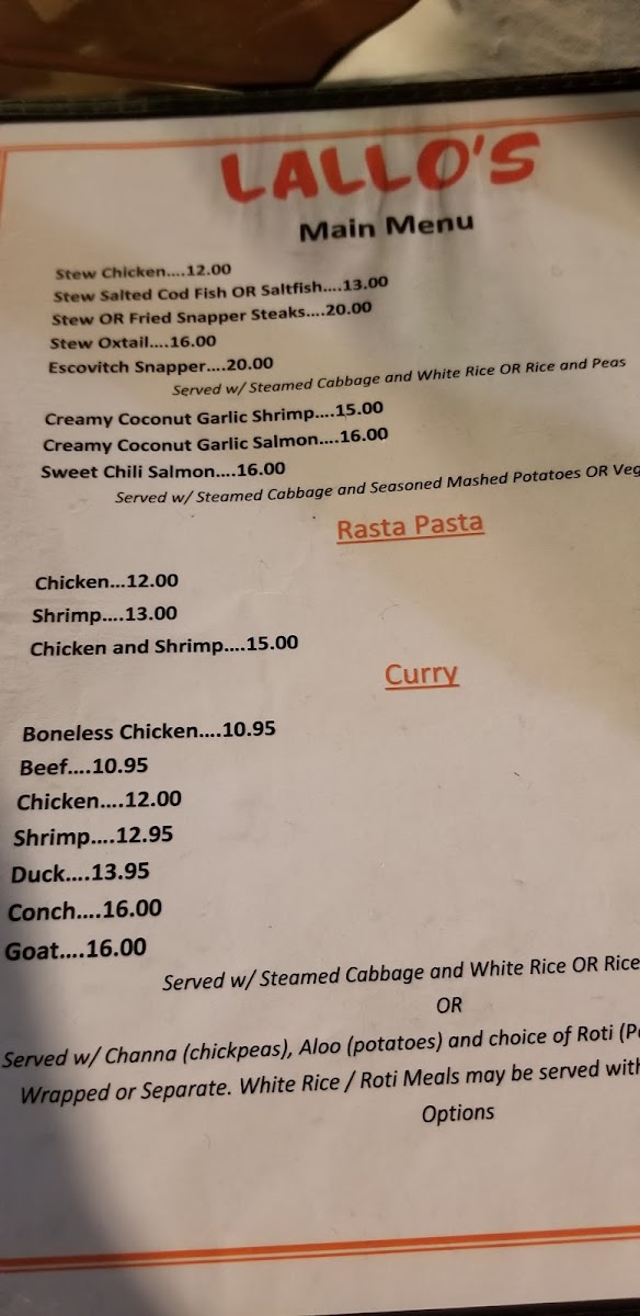 Welcome to Lallos, where the vibrant flavors of the Caribbean come alive! Nestled in Lauderhill, FL, this gem offers a diverse menu that will transport your taste buds straight to the tropics. From the tender Oxtail Stew at $13.95 to savory Curry Shrimp and Curry Chicken, there’s something for every palate. Veggie lovers will delight in the Curry Vegetable option, while seafood enthusiasts can savor the Curry Conch.